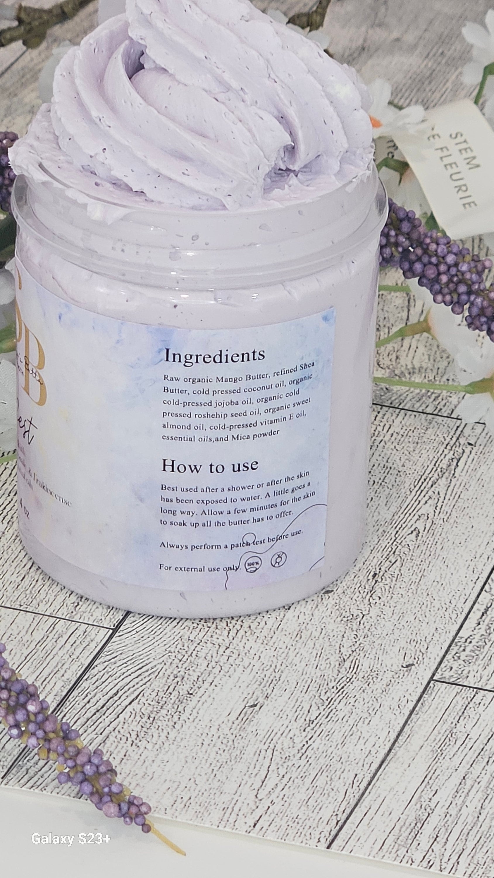 Rest Whipped Shea and Mango Butter with therapeutic grade Lavender, Chamomile, and Clary Sage oils